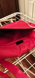 Design:La borsa ha un design a tracolla (shoulder bag) di colore ROSSO con bordi bianchi, ed è dotata di una pattina di chiusura.