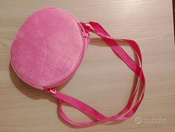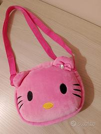 Vendo borsetta / borsa a tracolla in morbido peluche rosa, con zip, con il dolce viso di Hello Kitty, fiocco con diamante, diamantino, strass al centro.