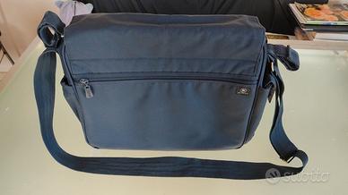 Munita di stracca per trasporto a spalla e comodi ganci a strappo per appenderla al manico del passeggino. Robusta ma allo stesso tempo leggera.