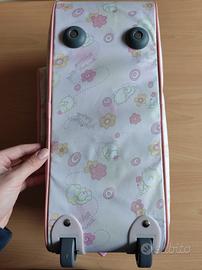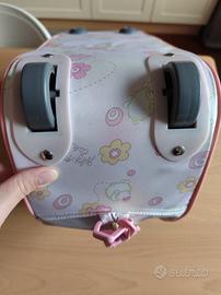 Nuova, in perfette condizioni, non un segno di utilizzo, conservata con carta all'interno, si vede qualche segno solo sotto i piedini di plastica sul fondo, con tracolla, manico e ruote