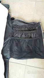 Dotata di: sacchetto separato per pannolini o vestiti sporchi, bretelle e maniglie della borsa aggiustabili in modo da appendere la borsa al seggiolino, due tappetini di plastica soffice, molte tasche porta accessori. Disegnato in Australia.