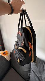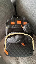 Splendido zaino per accompagnare la nascita di tuo figlio. La borsa è super capiente, dotata di reparto termico per conservare e mantenere il latte o altre bibite a temperatura, predisposizione per power bank e un vano incredibile: aprendo una semplice cerniera comparirà un grandissimo fasciatoio per cambiare e far riposare il tuo bimbo completo di materassino e zanzariera.