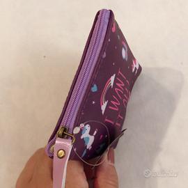 Puckator Borsellino con unicorni su entrambi i lati. Colore viola, chiusura con zip lilla e fodera interna a pois. Dimensioni cm 11x10. Prezzo di cartellino € 6,80, in vendita qui € 4,00.