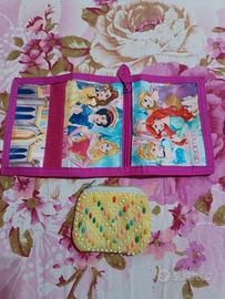 borsetta principessa Disney con portafoglio principesse Disney e piccolo porta monete