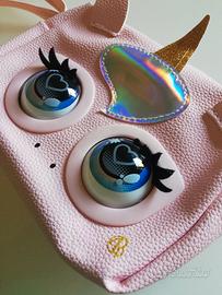 Borsetta interattiva da bambina dai 5 anni Purse Pets Glamicorn Unicorn in ecopelle rosa con tracolla regolabile. Con suoni, reazioni e occhi che si aprono e si chiudono. Misure 20,7x7,3x20,3 cm. Nuova mai usata, senza confezione.