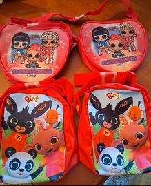 borsette bimbi con tracolla regolabile. 2 di BING E e 2 LOL. 1 a 4€ tutte e 4 a 10€. nuove, con cartellino