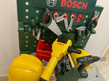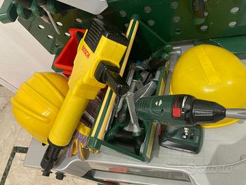Bosch Theo Klein banco da lavoro , con Attrezzi e molti Accessori. Buono stato.