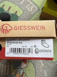 Nuove botini in pura lana vergine (100% wool) firmati Giesswein Made in Austria, modello Wildpoldsried Kids colore antracite (grigio scuro).