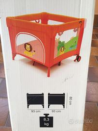 Ciao, sono Nicola. Se per il tuo pargolo stai cercando un confortevole e sicuro box, questo fa proprio al caso tuo! Ideale per far giocare o dormire il tuo bimbo in tutta sicurezza. Le quattro maniglie presenti sono pensate per aiutare il tuo bimbo ad alzarsi. I simpatici animaletti disegnati sui lati accompagneranno il tuo bambino dalla nascita fino ai primi passi. Tenuto come nuovo, esso è dotato di un morbido tappetino gioco asportabile, quattro maniglie di supporto, apertura finestra con zip laterale, borsa da trasporto, zanzariera, pupazzetti da compagnia applicabili sulle maniglie. Lo svendo causa fine utilizzo per 49Euro