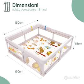 Box Bambini 150x150cm, Recinto Gioco Imbottito con Tappetino Reversibile, Palline Colorate e Anelli di Sostegno. Aperto ma mai usato. Consegna a mano.