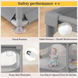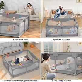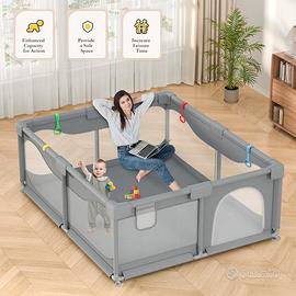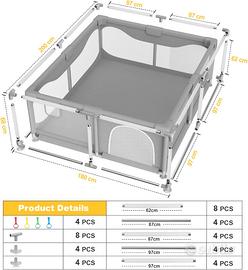 Box Bambini 200 x 180 x 68 cm, Recinto per Bambini Grande con Base a Ventosa, Tessuto Oxford 300D, Facile da Montare e da Pulire, Box Neonato - Senza Tappeto, Grigio