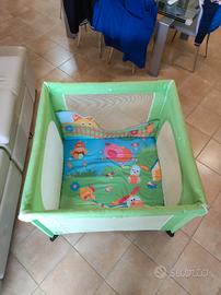box bambini, marca Chicco, pieghevole con sfondo country. Uscita laterale con cerniera.