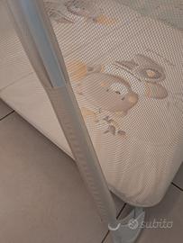 Dotato di corrimano imbottito e resistente ai morsi, 4 maniglie di sostegno, morbide protezioni dei tubi e rete anti intrappolamento delle dita.