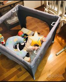 Chicco Open Box Lettino Neonati da Viaggio per Bebè e Bambini dalla Nascita fino a 15 kg, Pieghevole e Compatto, Culla da Campeggio con Tappeto Gioco, Finestre in Rete, 4 Maniglie e Borsa da Viaggio.