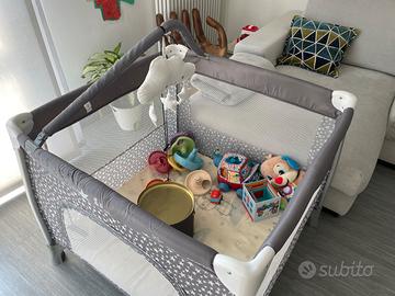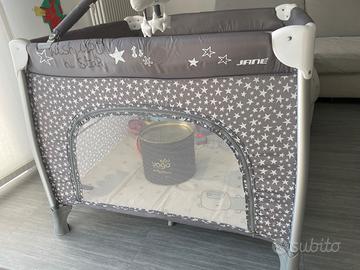 Box per bambini marca Jane, come nuovo. Usato pochissimo. Color grigio, compreso di tappetino interno. Facilissimo da montare. Misura aperto 90x90 Chiudo custodia 90x 30