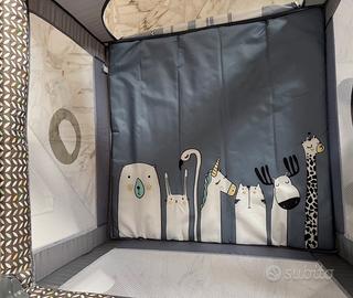 LIONELO Box per bambini e Lettino da Viaggio MILLE 2 in 1, 100 x 100 cm, Fino a 15 kg / 0 a 36 mesi, con Materasso 3D, Ingresso laterale con chiusura lampo, Ruote con freno, Facile da piegare