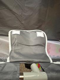 Il telo alla base è double face, di tessuto lavabile e spugnoso per assorbire urti. I giunti sono protetti da una serie di guaine di tessuto imbottito che li rendono non accessibili al bambino e li proteggono dagli urti.