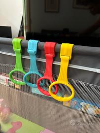 Include maniglie per sostenere i primi passi e lo stare eretti autonomamente.