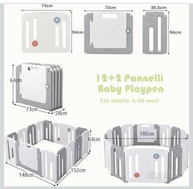 Box per Bambini Pieghevole, porta con serratura, forma regolabile, Cuscinetti Antiscivolo per uso interno ed esterno 12+2 Pannelli.