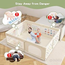 Recinto Bambini: Con una generosa area di gioco di 200 cm x 160 cm, c'è abbondanza di spazio per giocattoli, compagni di gioco e persino animali domestici, consentendo un ampio spazio per il movimento. L'altezza di 66 cm è progettata per ospitare il tuo bambino mentre si tiene in piedi e fa i primi passi, e il robusto design in rete assicura la sicurezza del tuo bambino. Questo prodotto include 50 palline , 6 maniglie, 1 borsa portaoggetti e 1 cestino porta palline.