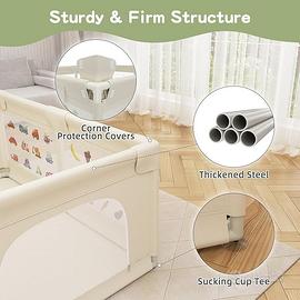Rispettoso dell'Ambiente e Antiscivolo: La recinto per bambini è realizzata in resistente materiale Oxford e robuste pareti laterali in rete, prive di BPA e facili da pulire. Basta lavarlo a mano e pulirlo con un panno umido e sapone per mantenere freschezza e igiene. Le ventose antiscivolo sulla parte inferiore del pannello lo rendono resistente al ribaltamento o allo spostamento.