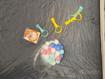 eSynic Box Bambini 127x127x70cm con Materassino Lavabile, Recinto per Neonati Modulare Pieghevole con Cestino da Basket e Pallini, Playpen Giochi per Bimbo Portatile da Viaggio con Rete Visibile,mai usato montato solo per fare le foto, troppo grande