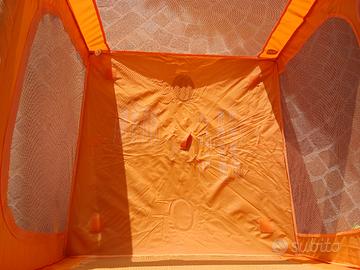 Vendo box quadrato Chicco, colore arancione brillante, ideale per garantire la sicurezza del bambino mentre gioca o riposa.