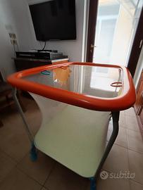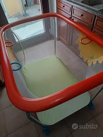 Box per bimbo/a della BREVI, rispetta tutte le normative di sicurezza. Bordo antimorso imbottito, 3 maniglie di sicurezza, rete antitrappolamento, distanza dal pavimento.