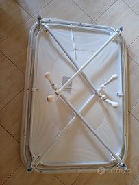 Box perfetto per i momenti di relax di grandi e piccini. Made in Italy 4 maniglie di sostegno. Corrimano imbottito e resistente ai morsi Rete anti intrappolamento delle dita. Si pulisce facilmente con una spugnetta. Chiusura compatta Altezza articolo circa 80,5 cm Descrizione Età di utilizzo: 0-15 kg 4 maniglie di sostegno corrimano imbottito e resistente ai morsi rete anti intrappolamento delle dita si pulisce facilmente con una spugnetta chiusura compatta sicurezza : - riferimento normativa europea: en 12227-1/2 - età di utilizzo: ideale per bambini di peso non superiore ai 15 kg - test del morso: viene effettuato sul corrimano che è realizzato con un pvc più resistente. lo scopo è di evitare che il bambino riesca a rompere il pvc con i dentini - test di stabilità laterale, frontale e posteriore per evitare il rischio di ribaltamento del prodotto con il bambino al suo interno - test anti intrappolamento della catenella / ciuccio - test impatto dinamico sulla base per verificare la resistenza della pedana - materiali completamente atossici (en 71) ed esenti da ftalati (direttiva 2005/84/ce). Come in foto leggera scucitura verso l imbottitura potete riparare con semplice ago e filo Parte sottostante in plastica riparata con biadesivo. Volendo si può mettere un semplice e sottile tappetino oppure come me nulla