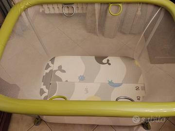 Vendo box bimbo/a Brevi mod Royal come nuovo perché praticamente non e’ stato quasi mai usato . Non presenta difetti ne segni di usura . . Dotato di maniglie di sostegno e allenamento all’equilibrio, bordo superiore imbottito e antimorso. Utilizzabiledalla nascita ai 3 anni . Rete in maglia anti intrappolamento delle dita e chiusura compatta a compasso. Occupa poco spazio Dimensioni: 125 x 79 x 81 cm. Lo vendo già montato. Pagato piu di 100 euro . Vendo alla metà del prezzo . No perditempo