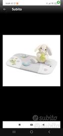 Tappeto gioco multifunzione utilizzabile dalla nascita, ricco di attività ludiche e interattive (specchietto, carta sonora, sonaglietto, carillon), e piccoli giochi removibili, morbido peluche a forma di coniglio. Materassino interno in tessuto trapuntato lavabile in lavatrice e comodo anche per un riposino essendo molto morbido.