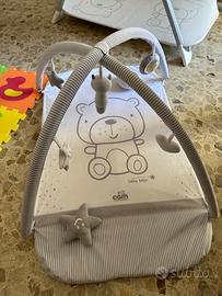 Box Cam Millegiochi con palestrina con chiusura compatta, 4 maniglie di sostegno, corrimano imbottito e resistente ai morsi.
