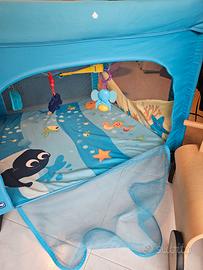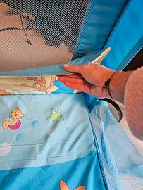 Vendo box quadrato chicco open sea con molte palline colorate. Ha una zip per permettere al bambino di entrare ed uscire anche in autonomia. Lascio anche la catenella con i giochini appesi oltre alle palline. Ha inoltre la sua borsa originale