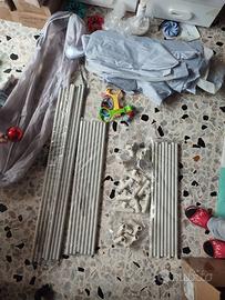 Completo di tutto, senza alcun danno, la porzione retata che copre la struttura tubolare è stata lavato in lavatrice prima di riporre tutto nella scatola originale.