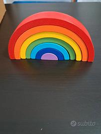 🔹 Arcobaleno in legno (Rainbow Stacker) – Il famoso arcobaleno multicolore in legno composto da archi ad incastro, perfetto per sviluppare la coordinazione e l’immaginazione.
