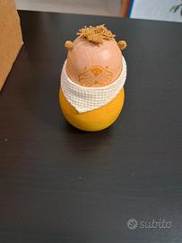 🔹 Tumbler sonaglio (Weeble Toy) – La classica patata sonora che resta sempre in piedi, perfetta per incuriosire il bambino con il suo dondolio e suono delicato.