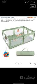 Vendo box gioco per bambini che misura 206x147, per 62 di altezza. Comprato a metà luglio a 111 euro. Allego foto del venditore, comprende quattro ganci per aiutare il bambino ad alzarsi. Completo di tappetino interno. Sbarre in ferro sntiruggine, tessuto Oxford. Praticamente mai usato. Prezzo trattabile per ritiro a mano.