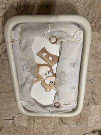 Dotato di corrimano imbottito e resistente ai morsi, 4 maniglie di sostegno e rete anti intrappolamento delle dita.