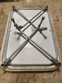 Misura da aperto: L 108 – P 71 – H 80,5 cm e da chiuso: L 104,5 – P 71 – H 25 cm.