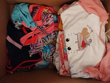 Scatolone misto vestiti per bambina 7-10 anni. Pile, impermeabili, pigiami, costumi, ecc..... come da foto