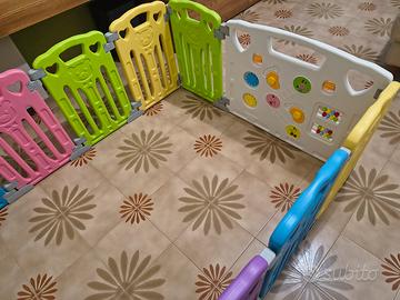 Gupamiga Box per Bambini è un box multifunzionale, che può essere utilizzato sia come recinto che come centro attività per i bambini da 0 a 6 anni. Il box è composto da 14 pannelli colorati, di cui uno con porta e uno con giochi educativi, che possono essere assemblati in diverse forme e dimensioni. Il box è realizzato in materiale plastico atossico e resistente, con angoli arrotondati e ventose antiscivolo. Il box offre uno spazio ampio e sicuro per i bambini, dove possono giocare, imparare e sviluppare le loro abilità motorie e cognitive.