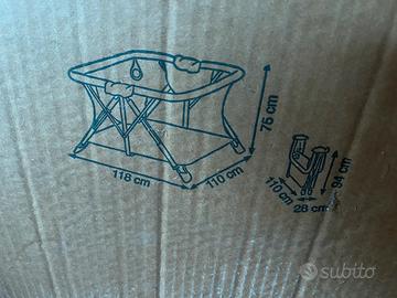 Box per neonato come in foto ma di colore avorio/ panna . Aperto misura cm 128 x 110 x 75. Completo di scatolone pet il trasporto. Solo consegna a mano.