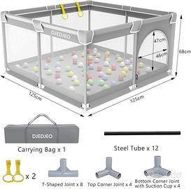 🐰【Parco Giochi Privato per Bambini】Le dimensioni sono 125x125x68cm. Un sacco di spazio per i bambini per giocare con i loro giocattoli, amici o animali domestici. L'altezza della recinzione è di 68 cm, per aiutare il bambino a stare in piedi e a camminare, per bambini da 0 a 6 anni. Il nostro box bambini offre al bambino la libertà di esplorare l'ambiente circostante in un ambiente sicuro, impedendo al piccolo di entrare in oggetti pericolosi.