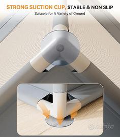🐰【Struttura Robusta e Materiali Sicuri】 I box bambini sono realizzati in morbido tessuto cationico e robusti tubi d'acciaio. Le 4 basi a ventosa rafforzano la stabilità e sono difficili da spostare o ribaltare. Sulla parte superiore delle guide è stata aggiunta una spugna più spessa per evitare che i bambini vengano colpiti. Inoltre, grazie alla sua struttura senza cuciture, evita che la testa e le dita dei bambini rimangano impigliate ed è più sicuro del box per bambini in plastica.