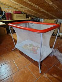 Vendo box bambini richiudibile. Colore arancione con disegno materasso. Nessun danno, retina perimetrale completa senza buchi .
