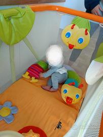 È dotato di un tappeto gioco multifunzionale e di giochi removibili, offrendo attività ludiche interattive.