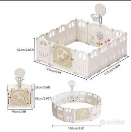 Vendo box / recinto pieghievole con canestro da basket per bambini, 14 pannelli da modulare a piacimento. Compreso di scatola. Si preferisce ritiro a mano.