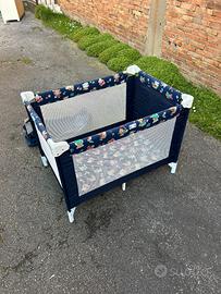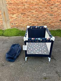 Vendo bellissimo box per bambini (lettino da gioco/campeggio) pieghevole, caratterizzato da una fantasia blu con orsetti colorati.