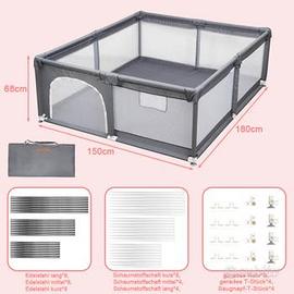 Box per bambini in tela e rete colore grigio scuro.
