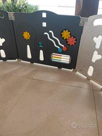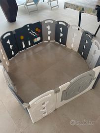 Box per bambini pieghevole 12+2 pannelli, box modulare con canestro da basket, box per interni ed esterni in plastica senza BPA. Usato , buono stato, normali segni di usura .